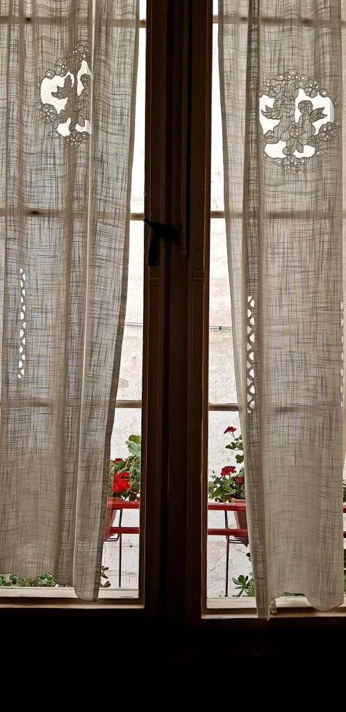 Debruçada na janela.